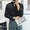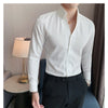 Áo sơ mi cổ V Nút-Dow hàn quốc slimfit trắng đen vải lụa nhăn nhăn VINTINO SMV2C